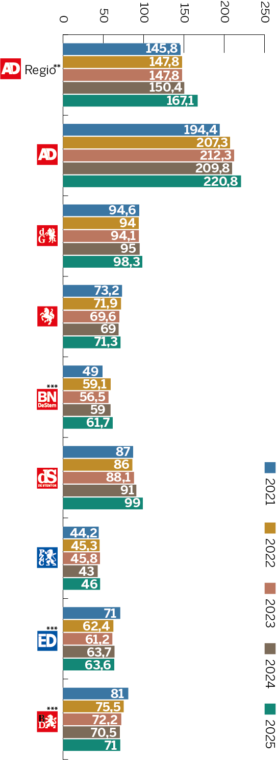 Sinds de zomer van 2025 schrijven sommige van onze columnisten hun stukjes niet alleen uit, zij spreken die ook zelf in. Sjaak Bral (AD Haagsche Courant), Annelieke Aardoom (AD Rotterdams Dagblad & AD De Dordtenaar) en Jerry Goossens (AD Utrechts Nieuwsblad) doen dat op hun eigen manier, met hun eigen accent. Precies zoals ze zijn en klinken.